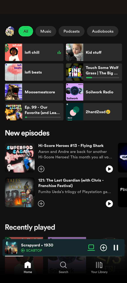Speaking of jank, holy hell is the home screen and now playing screen cluttered. The home screen is littered with different suggested playlists, suggested artists, podcasts, and songs, upcoming concerts for bands that you follow, and even audiobooks. I like that Spotify has so many options and so many suggestions, but I wish I could dismiss a lot of the stuff that I don't care about. And it's cool that I can support artists by buying concert tickets or merch through Spotify, but I wish that was only from the artist's profile. When you're on the now playing screen, you can swipe up to see lyrics, "About the Artist", upcoming concerts, "Explore so-and-so Artist", credits, and a lot more. I mean, I don't HAVE TO swipe up from the now playing screen, so it shouldn't be an issue. But it's there, and it's cluttered as hell.